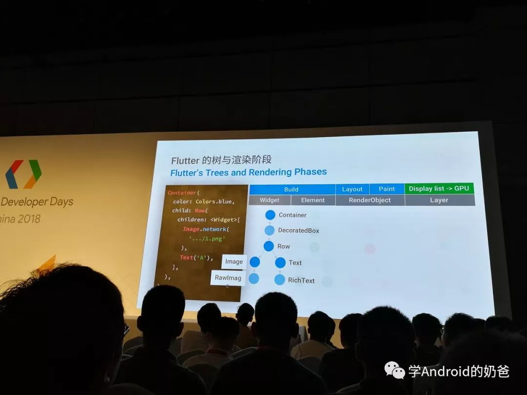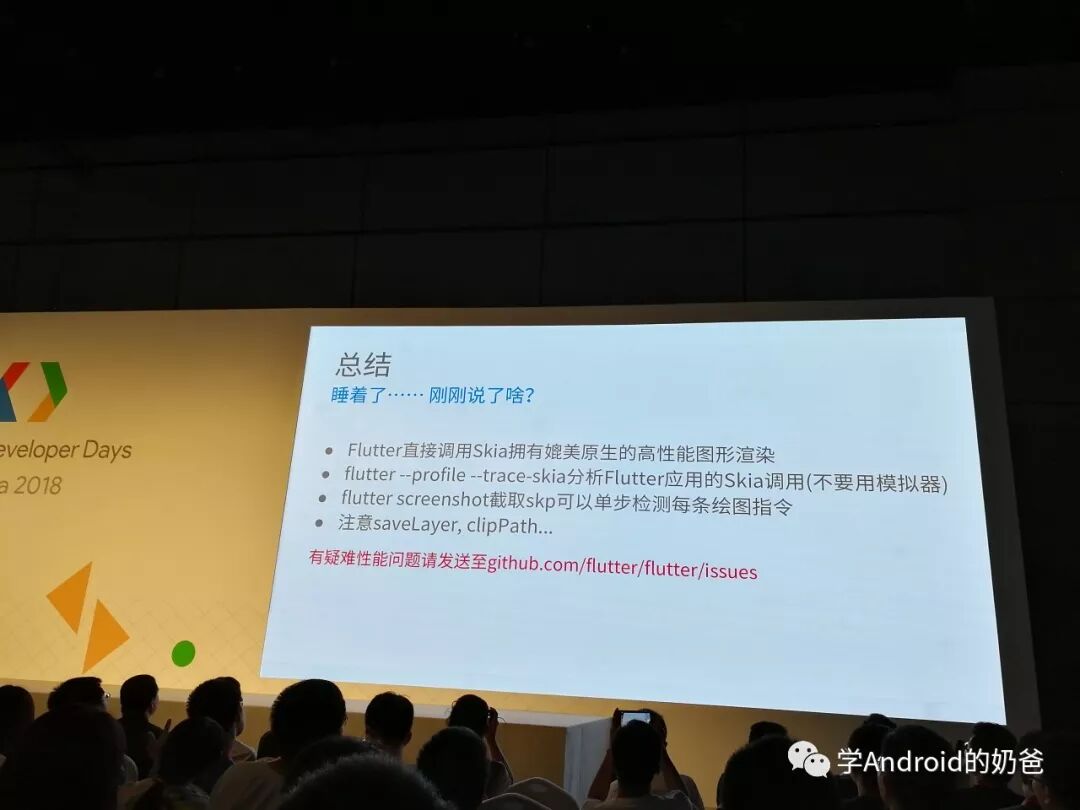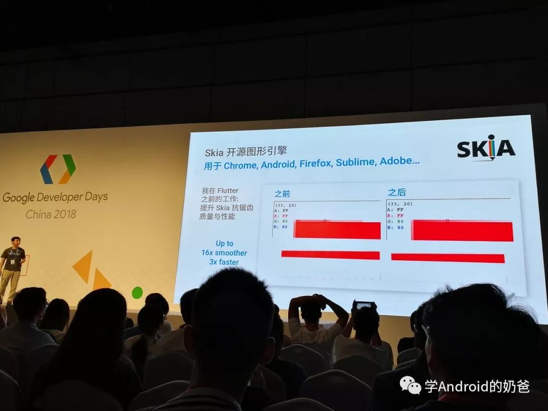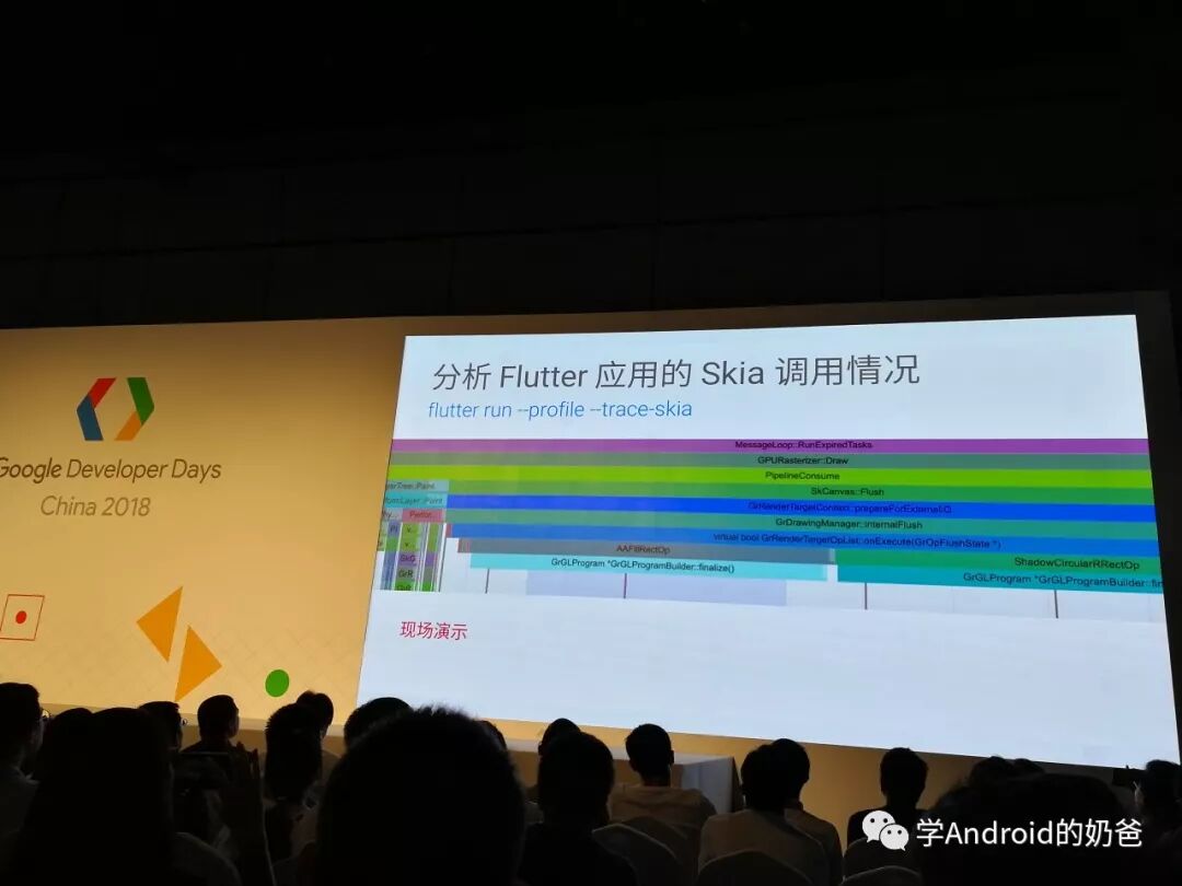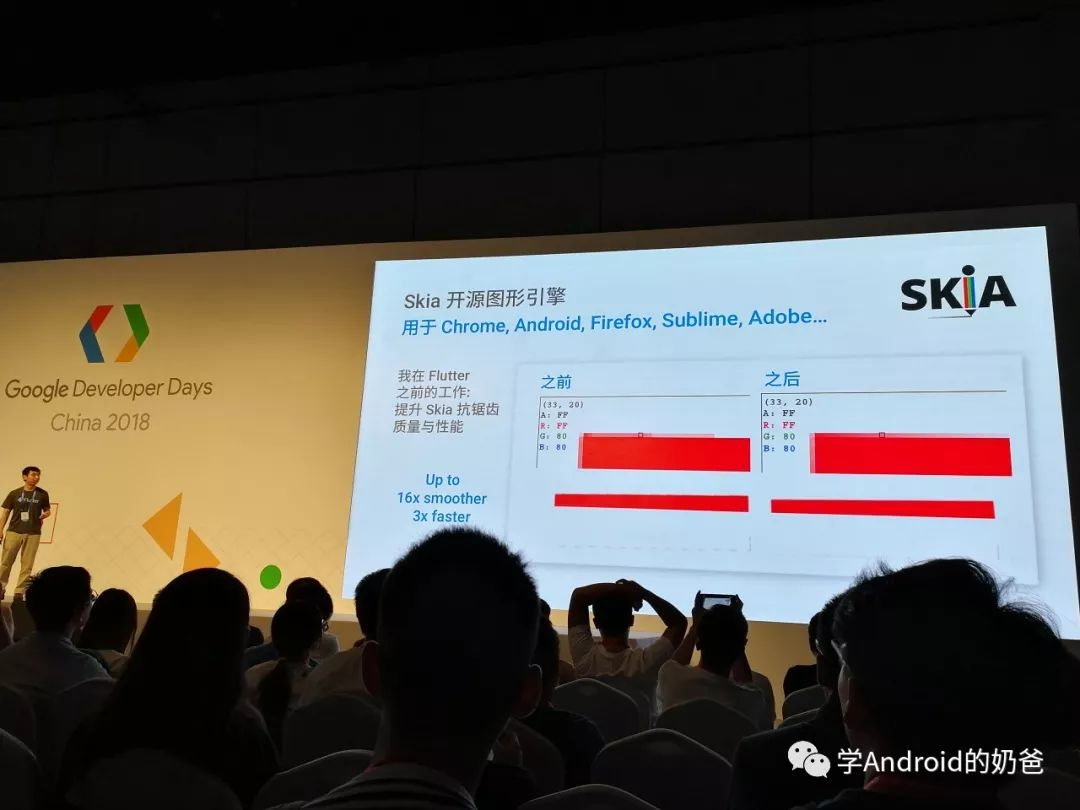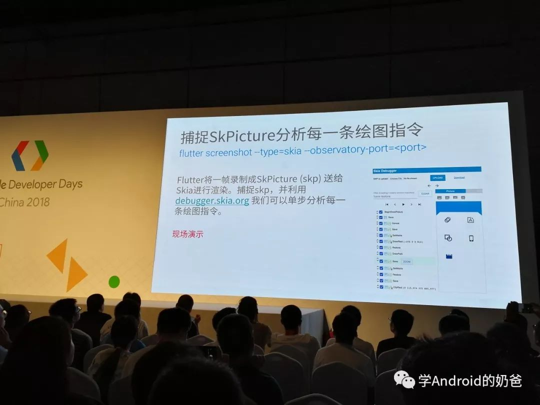 又串到分会场2听Flutter。主要讲了Flutter树和渲染,以及如何优化,避免不必要的渲染,以及如何调试Skia等。