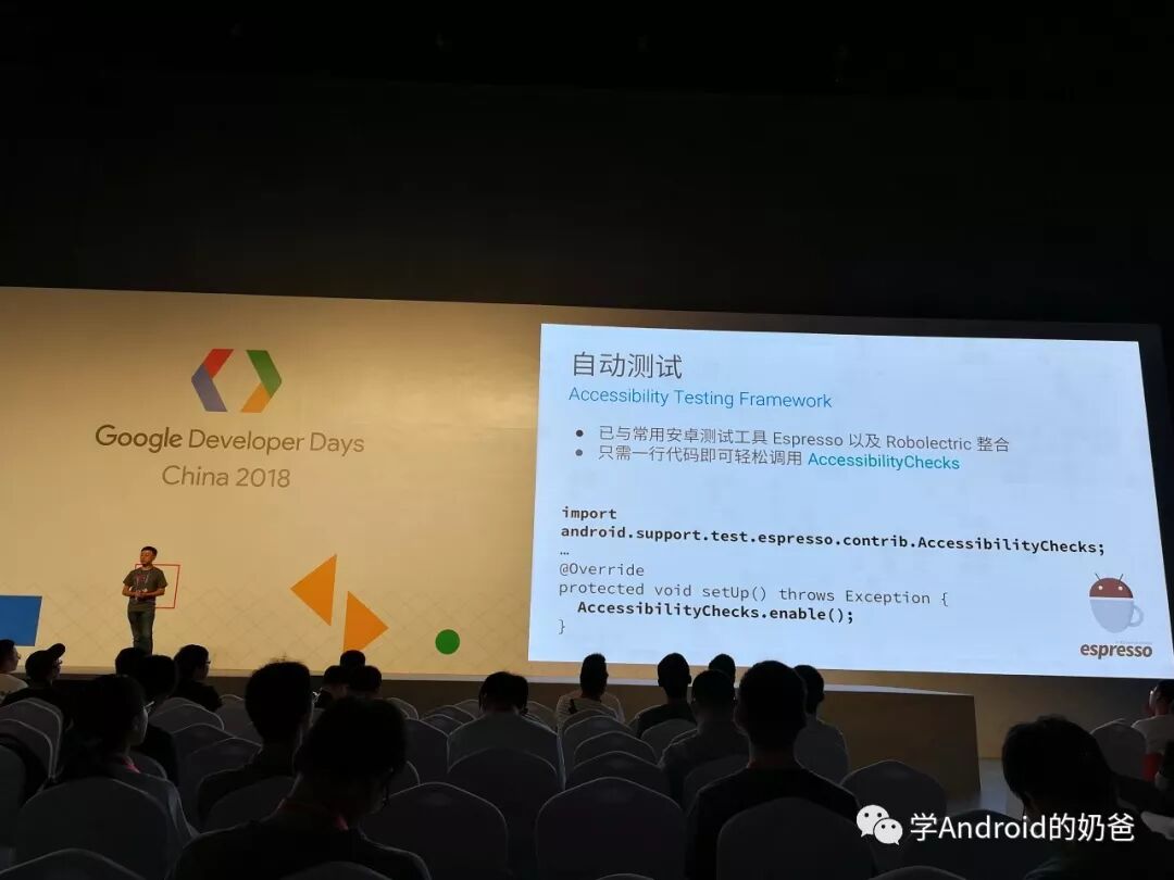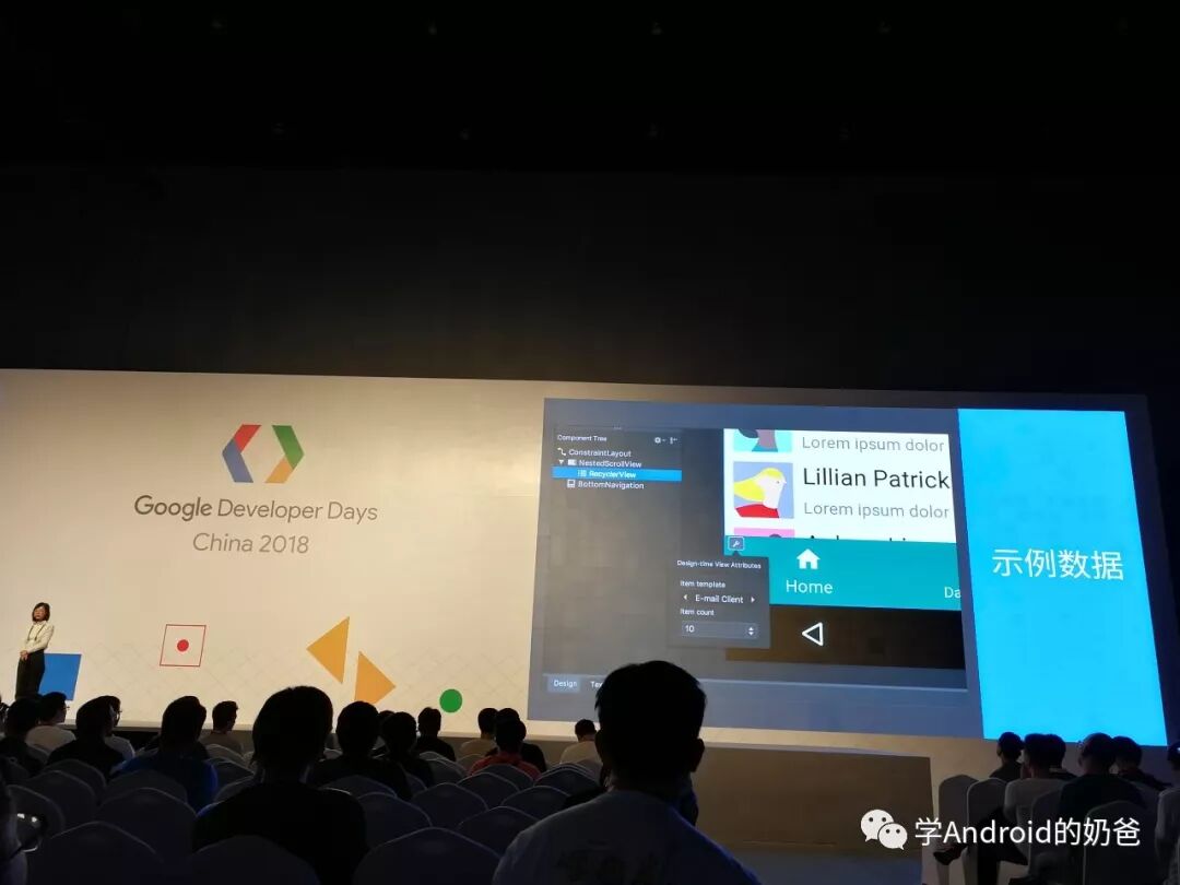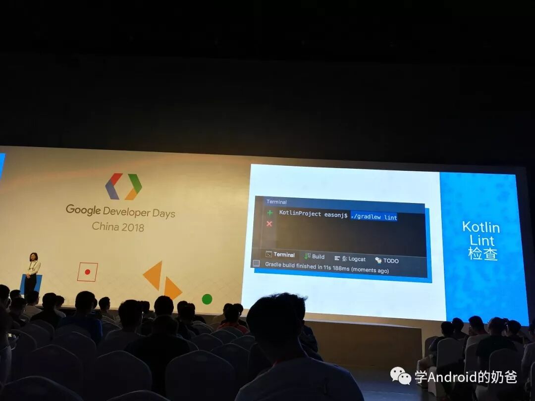 从PPT中可以看出,他们代码全部都用了Kotlin。我在2楼展区的时候也问了Google工程师,他们在开发的时候用到Kotlin多吗?他回答说他们新的项目很多时候会用Kotlin来开发,而一些老项目还在用Java。技术圈里对Kotlin的争议也比较大,有些人看好,有些人看衰。我这个人也比较容易接受新鲜事物。我是比较看好Kotlin的,虽然我现在还没在项目中用,哈哈!但是从开发效率上来说,Kotlin的语法糖能节省一些开发时间,而且AS对于Kotlin的支持只会越来会好。所以学会Kotlin肯定不会有错的。