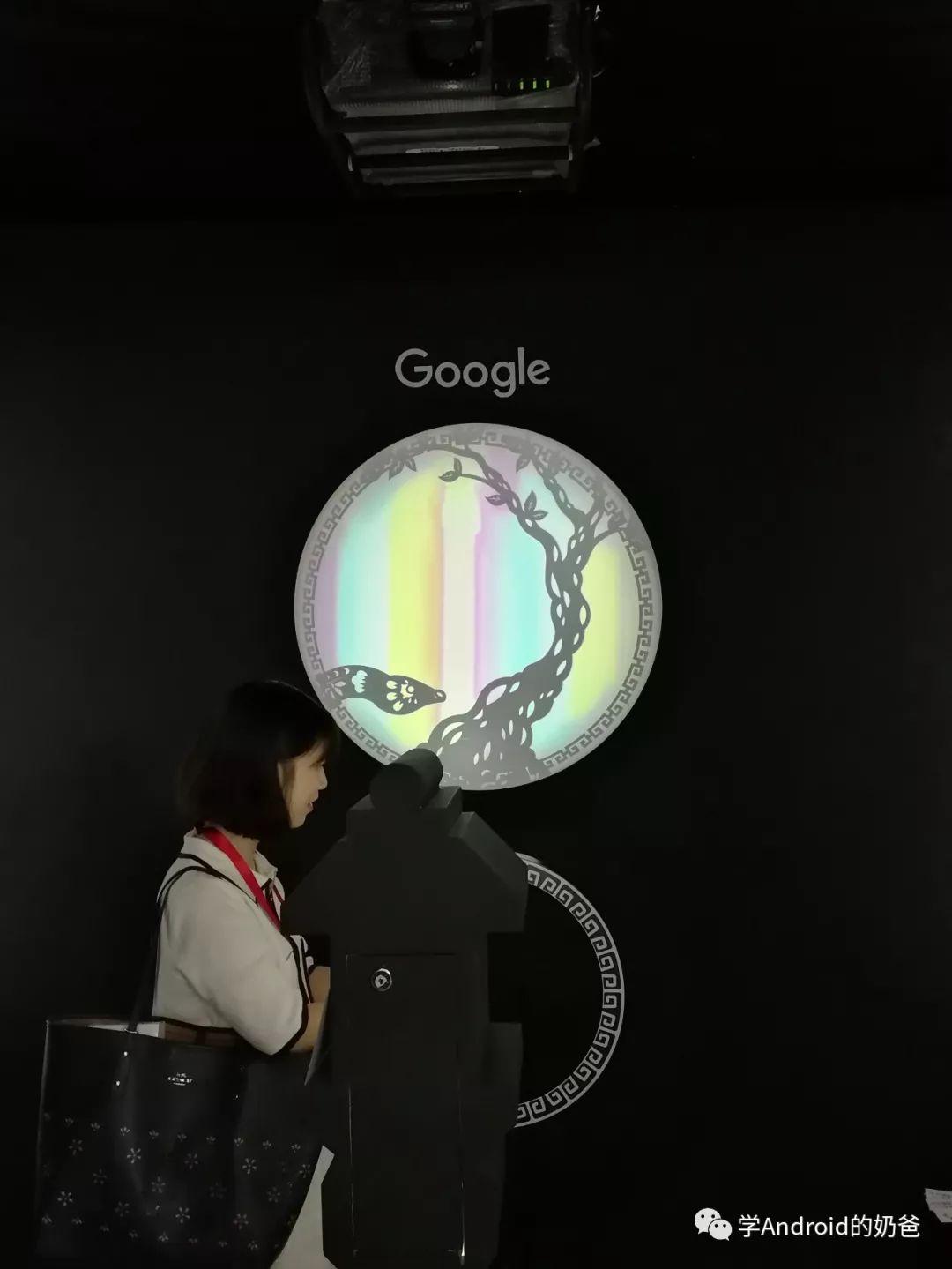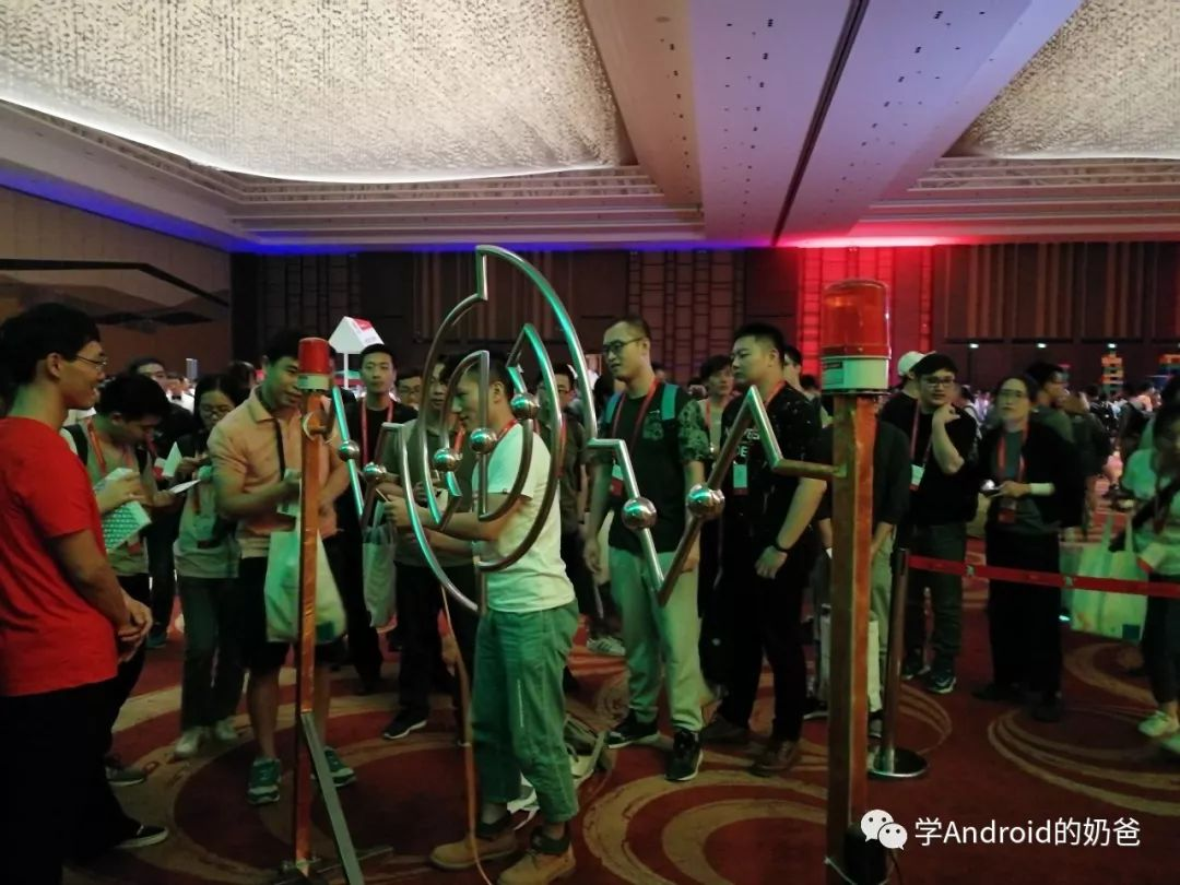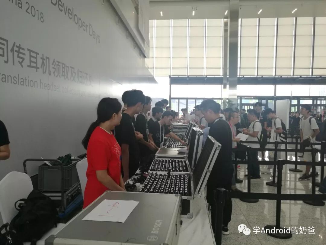 先过安检,再排队签到,签到时候会给每人发一个印有大会LOGO的手提袋,里面有一些大会和Google产品相关的宣传页,还有一个鲁班锁。签到处旁边可以凭身份证领取同传耳机,结束后归还。签到后又认识了一位小伙伴。二楼是产品体验区,这个后面再讲一下。
