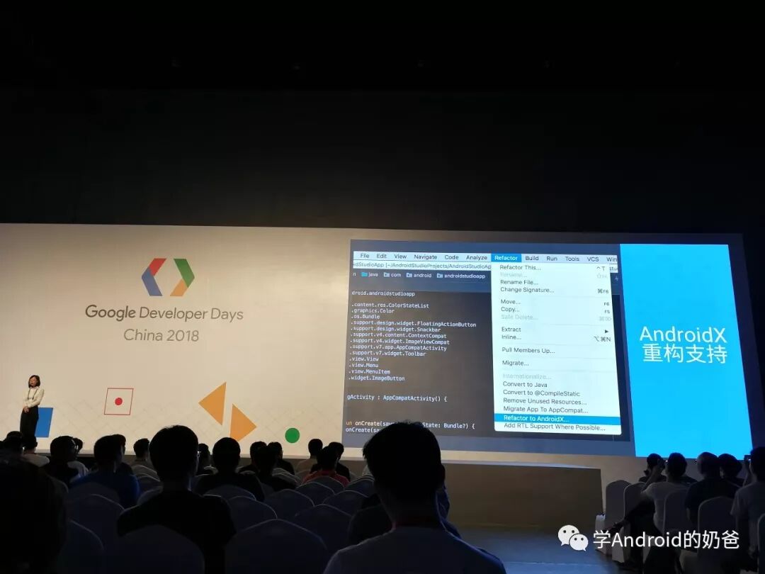 第二天主要是TensorFlow和ARCore专场。我先去分会场3听了AS的内容。主要内容有AS3.2有一键重构命名空间为AndroidX,Build Bundle等功能。