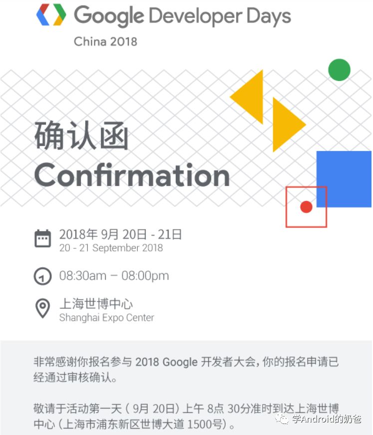 这里稍微插一下,15号开放报名通道那天,我并没有第一时间报名,因为我开始没打算去的。又过了几天,看到一条消息说是最后一天报名,然后我就抱着试试看的心态填了报名表,就当试试看能不能报上。结果9月3日那天真收到邮件说我的报名申请已经审核通过。要知道这次大会总共只有3000张门票,我算是挺幸运的。