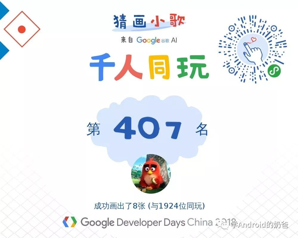 然后我们去了主会场,找了位置坐下。过了一会,大会开始了。首先以猜画小歌千人同玩来热场,这是灵魂画手大显身手的时候。像我这样的手残党,只得了407名。