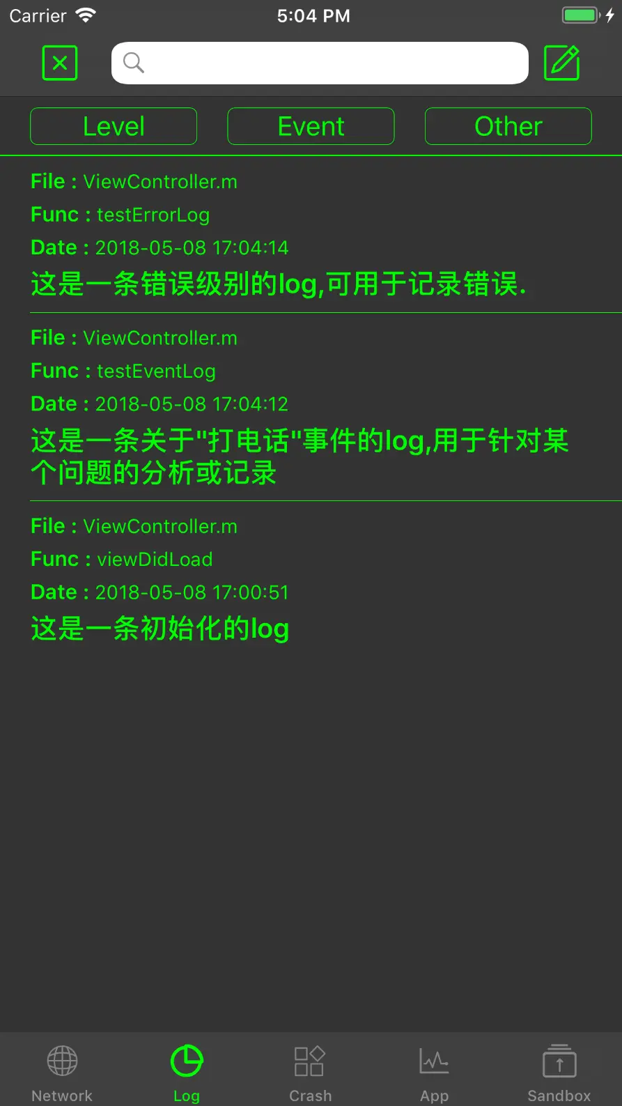 - 你可以下载并运行LLDebugToolDemo或LLDebugToolSwiftDemo来发现LLDebugTool的更多使用方式。Demo是在XCode9.3,ios 11.3,cocoapods 1.5.0下运行的,如果有任何版本兼容问题,请告诉我。