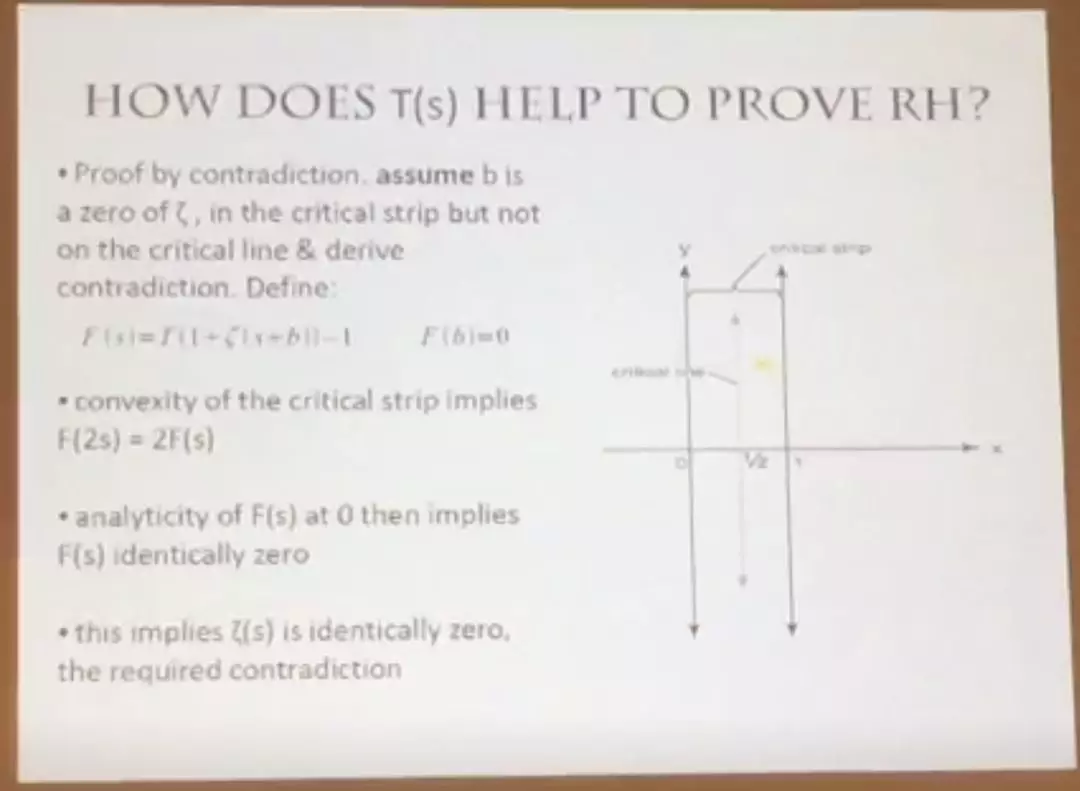 证明依靠一个新的函数 T(s),也就是 Todd 函数,由 Hirzebruch 以我的老师 J.A.Todd 名字命名。其定义和性质都在参考文献 [2] 中。但在章节 2 中,我会进行回顾与解释。在章节 3 中,我将使用 T(s) 函数证明黎曼猜想。在章节 4 中,也就是 Deus ex Machina 一节中,我将尝试解释黎曼猜想的证明。最后,在章节 5 中,如同设想的一样,我将把此论文放到 Arithmetic Physics。