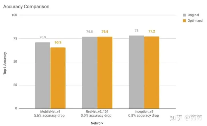 图3:精度比较:除 mobilenets外,优化后的模型的精度下降几乎可以忽略不计