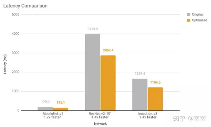 图2:延迟比较:优化后的模型速度提高了1.2到1.4倍