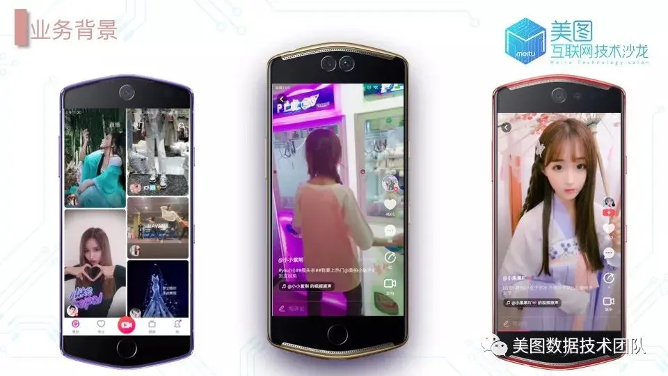 我们团队主要业务场景在美拍潮流短视频社区,美拍首页以双列流形式展示,也就是热门短视频场景。若用户看完当前热门短视频意犹未尽,想看更多相似内容时可向下滑动,即上下滑业务场景。