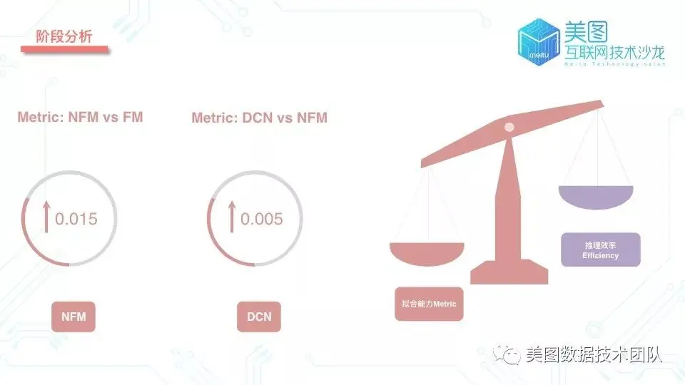 如何得到一个很好的深度模型 DNN?我们不可能每做一次调整就尝试应用于线上服务,而是需要通过一些指标来快速衡量模型是否符合预期。那么我们从两个业务需求点出发确定两个指标,一个指标用来衡量模型的拟合能力 Metric,另一个指标用来衡量模型的推理效率 Efficiency ,简单来说两个字:准和快。
