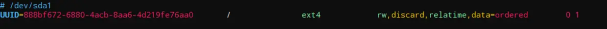3.修改/etc/fstab文件,在挂载选项之中添加discard,重启之后就开启了TRIM
