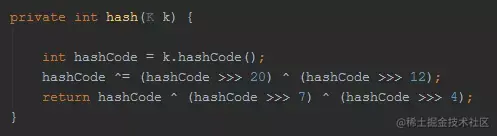 要均匀分布,要较少碰撞。说白了,我们希望通过hash函数,让数据均匀分布在数组中,不希望大量数据发生碰撞,导致链表过长。那么怎么办到呢?也是利用位运算,通过对数据的二进制的位进行移动,让hash函数得到的数据散列开来,从而减低了碰撞的概率。