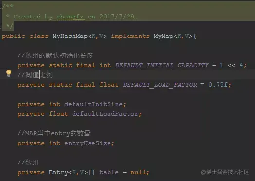 HashMap的要素之一,就是数组,自然在这里,我们要定义数组,数组的初始化大小,还要考虑扩容的阀值。
