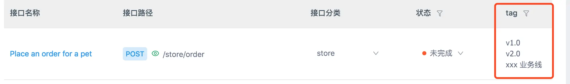新增接口 tag 功能