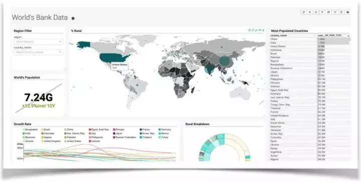 当你向上级做一份关于世界人口数据的调查时,又或者你需要向客户介绍一份基于地点的产品使用量报告,你拿出事先做好的 Excel 表格或者世界地图,切换着 PPT,一个国家一个国家的分析,在听众睡眼惺忪中结束了报告;又或者你拿出了这个——统观世界地图的数据报表,一张清晰扼要的图片可胜过千言万语。希望阅读本文后,你也可以做出一份大获好评的数据分析报表。