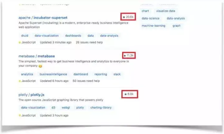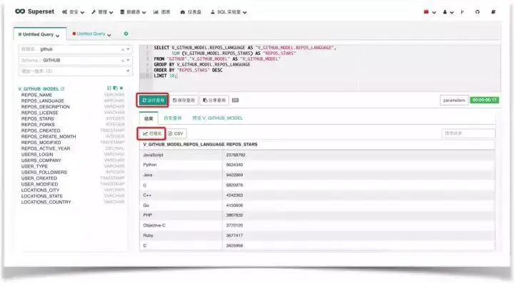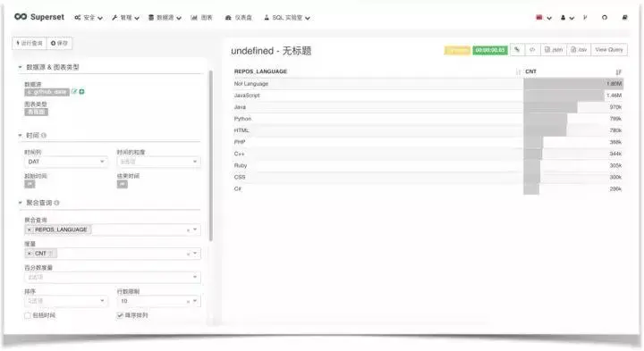 Superset 是一个用于数据探索和可视化功能的开源数据分析工具。当在 GitHub 上搜索 Data Visualization 时,Superset 的收藏数比其他可视化工具高出一个数量级。