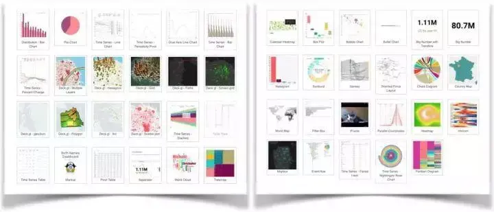 Superset 通过让用户创建并且分享仪表盘的方式为数据分析人员提供一个快速的数据可视化功能,用丰富的数据可视化方案来分析你的数据。炫目的可视化效果, 成熟的数据抽象层可以用来提供敏捷、美观、稳定的交互式分析体验。目前 Superset 支持多达47种不同的图表,根据需求使用不同的图表显示不同的效果。