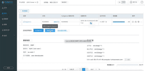 Step2:待集群状态变为 RUNNING 后点击 Superset 并登录。
