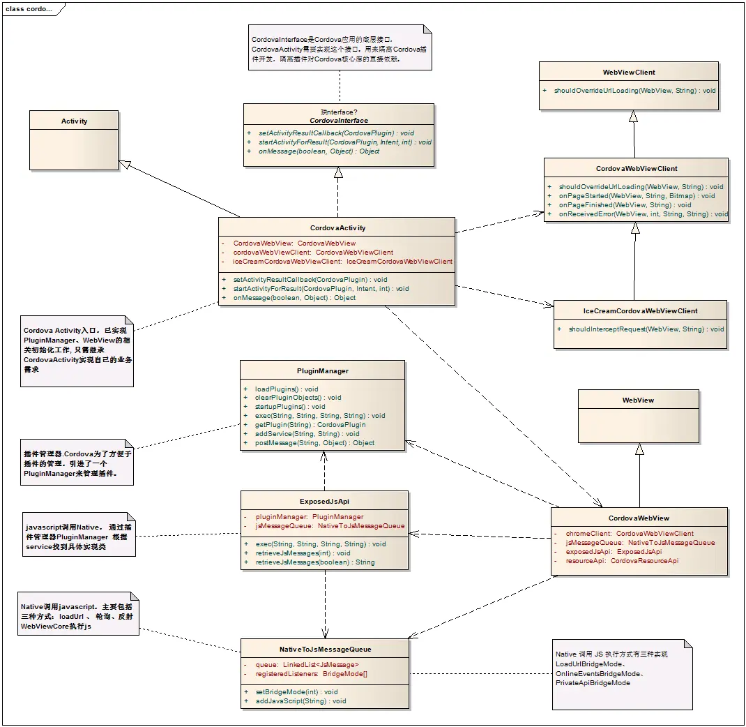 引用网上的一张图,一起来看看PhoneGap底层框架类图~~