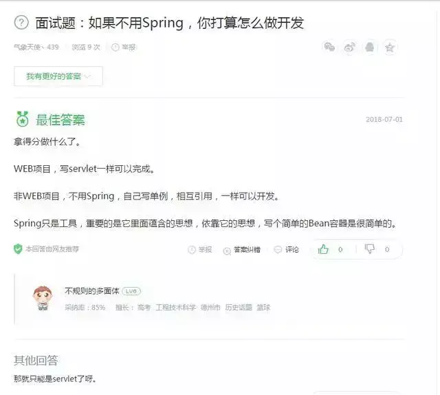 就是这么一道spring面试题,要是面试官问你,你该如何回答?答案各有千秋,接下来看看网友们是怎么说的。