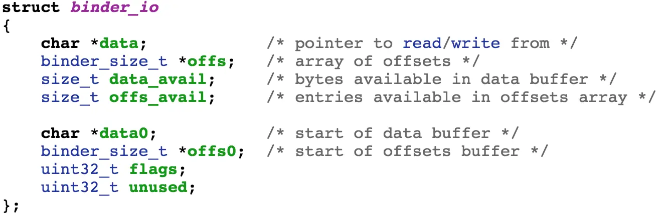 struct binder_io reply; // 用来保存"回复给Binder驱动的信息"