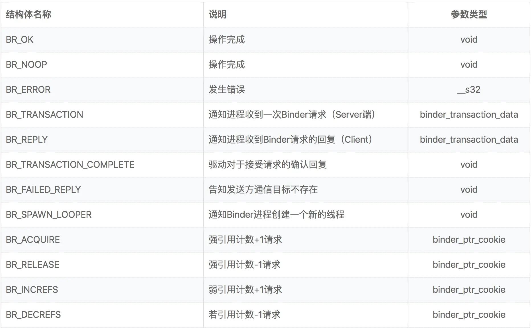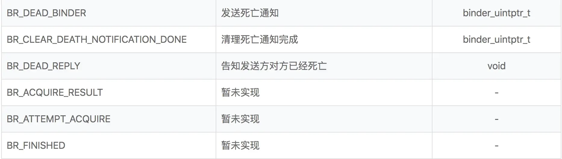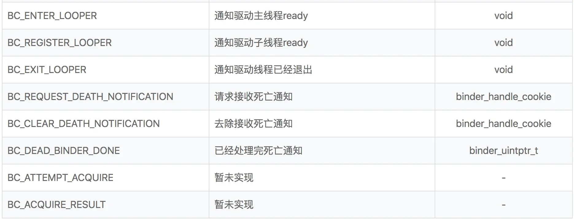 经过binder_thread_read()处理之后,bwr.read_buffer中包含了两个指令:BR_NOOP和BR_TRANSACTION_COMPLETE。