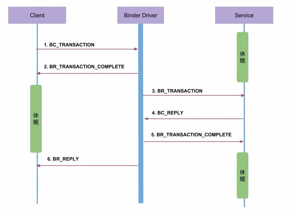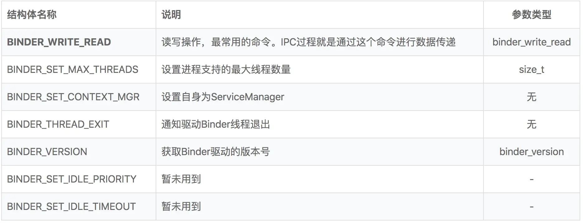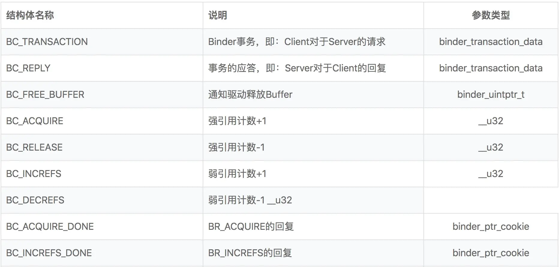 经过binder_thread_read()处理之后,bwr.read_buffer中包含了两个指令:BR_NOOP和BR_TRANSACTION_COMPLETE。