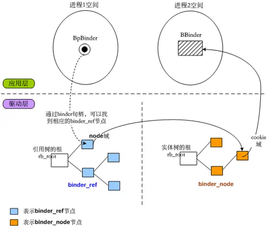 // 表现为,执行binder_get_ref_for_node()会,会先在MediaPlayer进程中查找是否存在MediaPlayerService对应的Binder引用;