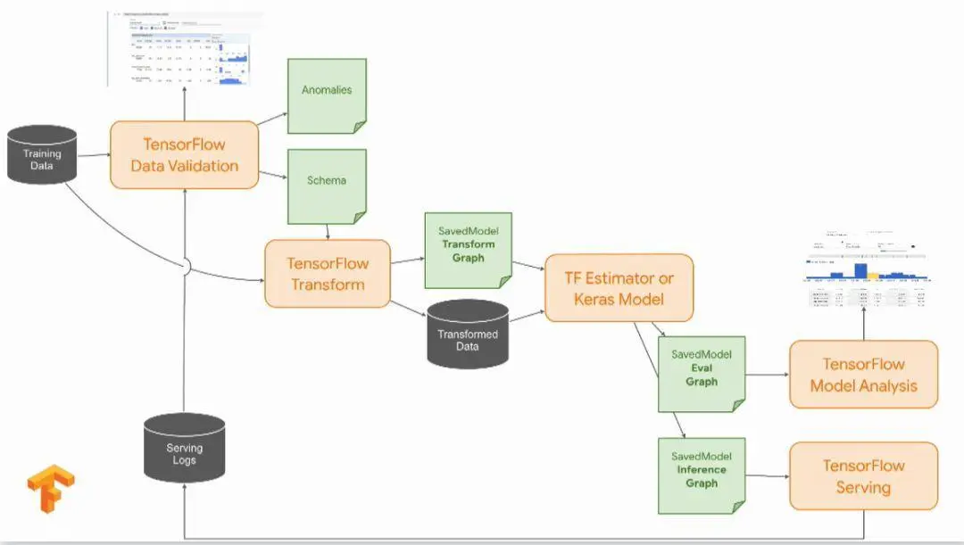 对应于第一种模型,Tensorflow Model Analysis可以方便我们对模型进行分析,是不是存在参数的问题,抑或是模型哪里设计的不合适等等;通过分析后,感觉模型不错,我们就可以通过Tensorflow Serving进行部署。