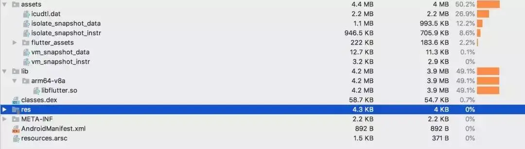 在发布模式下,Android Flutter 项目中的 Dart 代码结构如下: