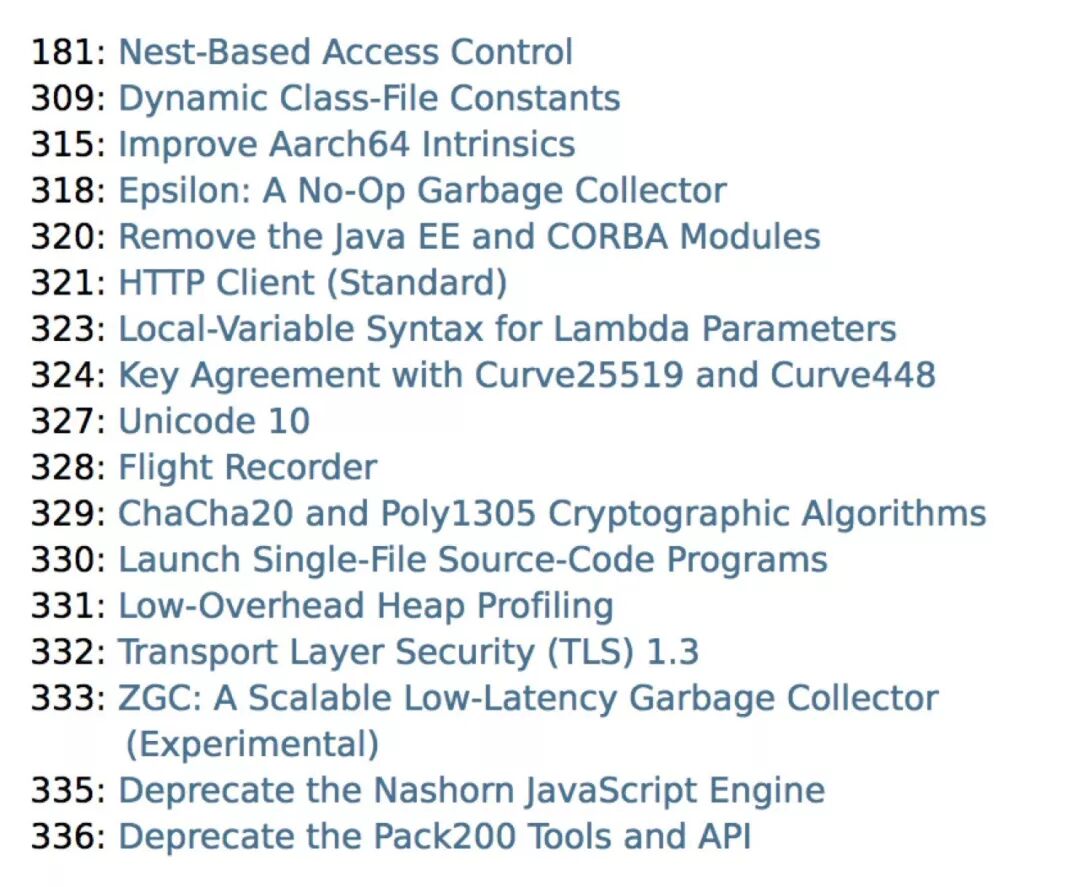 最新发布的 Java11 将带来 ZGC、Http Client 等重要特性,一共包含 17 个 JEP(JDK Enhancement Proposals,JDK 增强提案)。