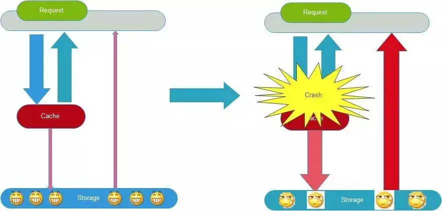 缓存过期后将尝试从后端数据库获取数据,这是一个看似合理的流程。但是,在高并发场景下,有可能多个请求并发的去从数据库获取数据,对后端数据库造成极大的冲击,甚至导致 “雪崩”现象。