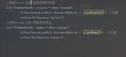 .filter(p -> p.getName().equals(name) && p.getCourse().equals(courseName)) //筛选条件