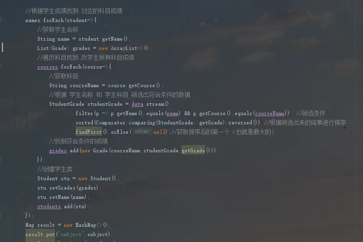 .sorted(Comparator.comparing(StudentGrade::getGrade).reversed()) //根据筛选出来的结果进行排序