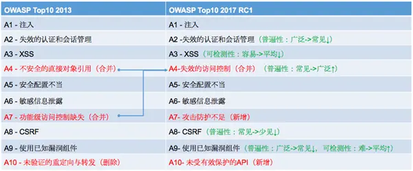 这是13年到17年的一个图片对比,图片来源OWASP更新对比