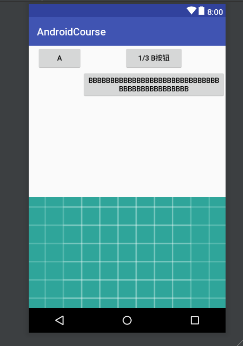 android:text="1/3 B按钮"