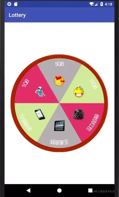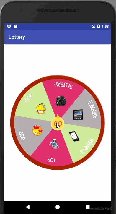 哈哈,到这里我们可以看到,我们抽奖转盘已经-完成了。中间在添加一个指示器,我们的圆盘就大功告成了。