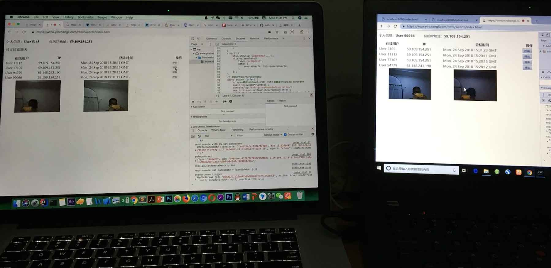 ...然后把这个offer通过websocket服务发送给要连接的对方,对方收到后创建一个answer,格式、作用和offer一样,发送给呼叫方告知被呼叫方的一些信息。当任意一方收到对方的sdp信息后就会调setRemoteDescription记录起来。而当收到默认的ice server发来的打洞信息candidate之后,把candidate发送给对方(在setRemoteDesc之后),让对方发起连接,成功的话就会触发onaddstream事件,把事件里的event.stream画到video上面即可得到对方的影像。