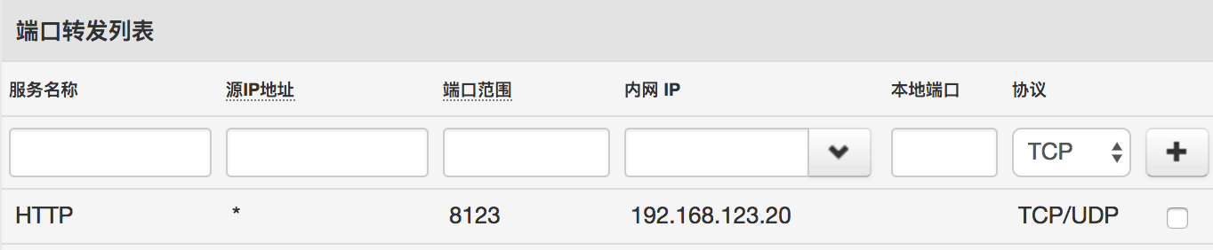 上图的配置是把所有发往8123端口的数据包到转到192.168.123.20这台设备上。