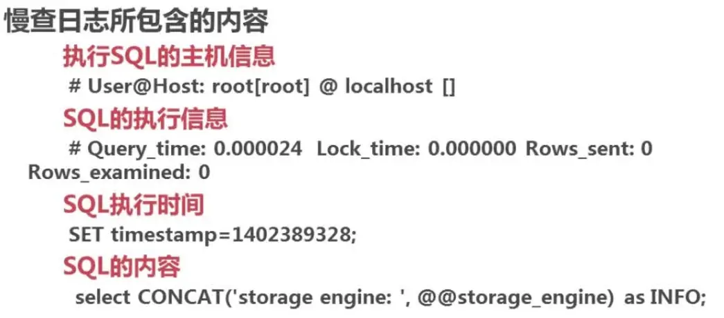 - 慢查询日志文件路径:show variables like 'slow_query_log_file';