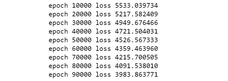 print('epoch %d loss %f' % (i, loss))