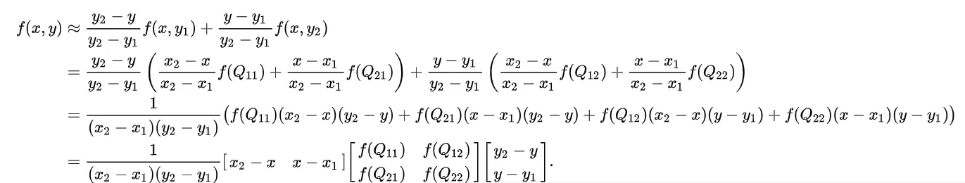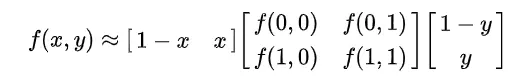 //插值公式,参考维基百科矩阵相乘的公式https://zh.wikipedia.org/wiki/%E5%8F%8C%E7%BA%BF%E6%80%A7%E6%8F%92%E5%80%BC