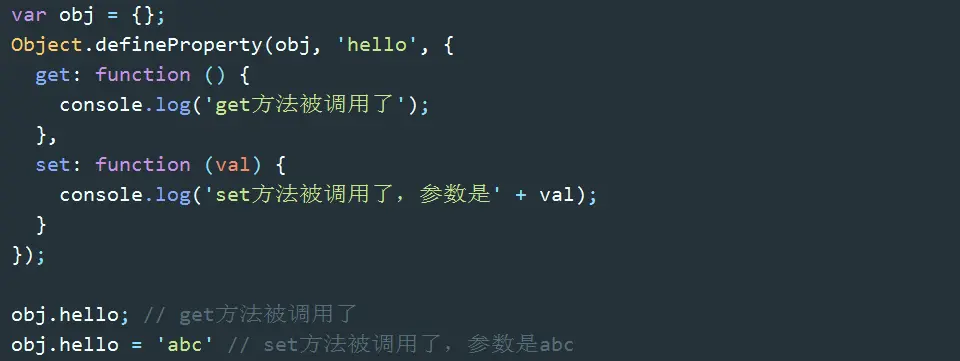 - get 和 set 方法内部的 this 都指向 obj,这意味着 get 和 set
