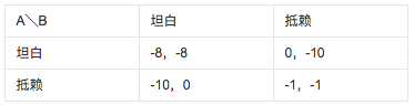 - 如果A供述,B不供述,那么A可释放,B要坐10年牢(反之亦然)