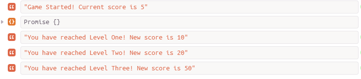 当我们在startGame()内部作用域调用levelOne()函数,JavaScript用异步方式执行levelOne()函数,主线程继续执行代码的剩余部分。