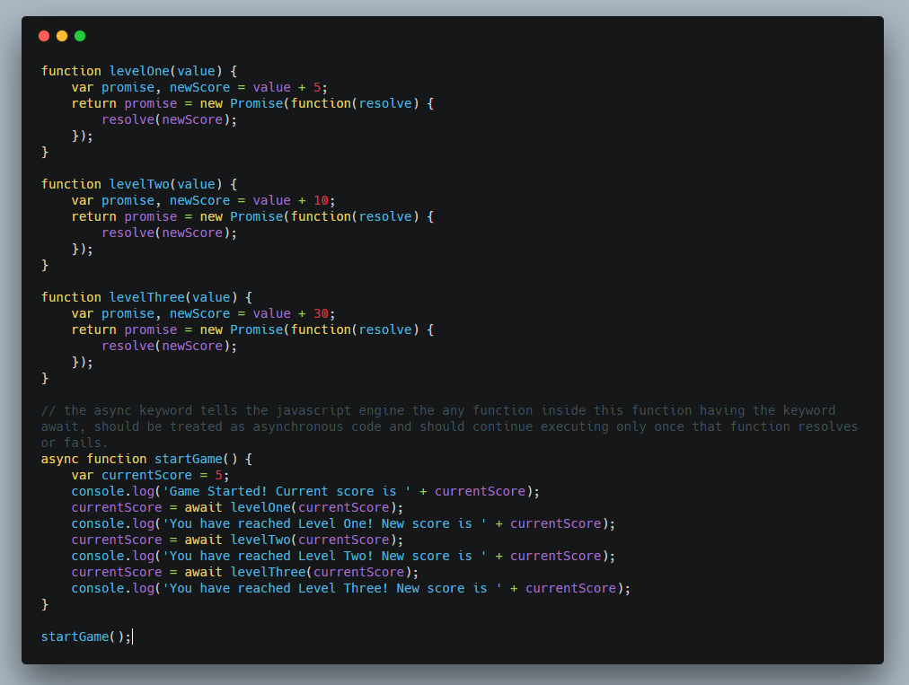 现在来看看我们的游戏逻辑看起来如何用async/awaits重写它!