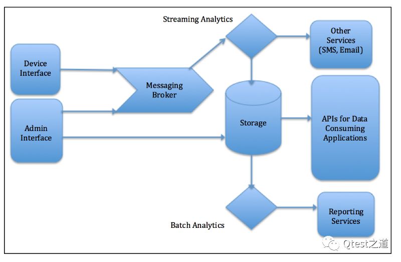 设备将消息传递给message broker,该层通常使用RabbitMQ、ActiveMQ、ZeroMQ和Apache Kafka,从而实现服务的可伸缩性。