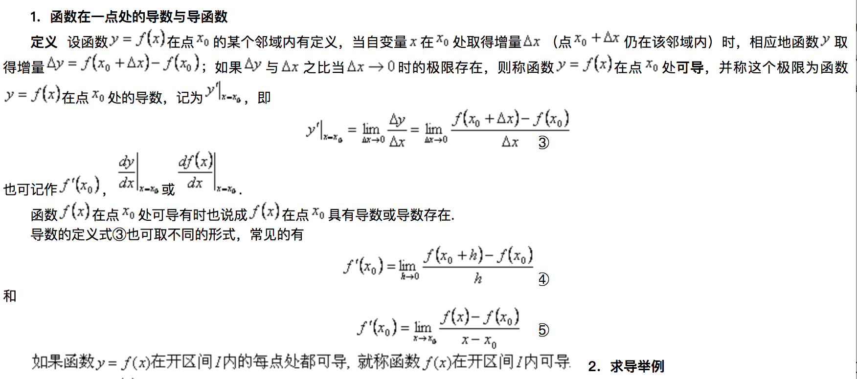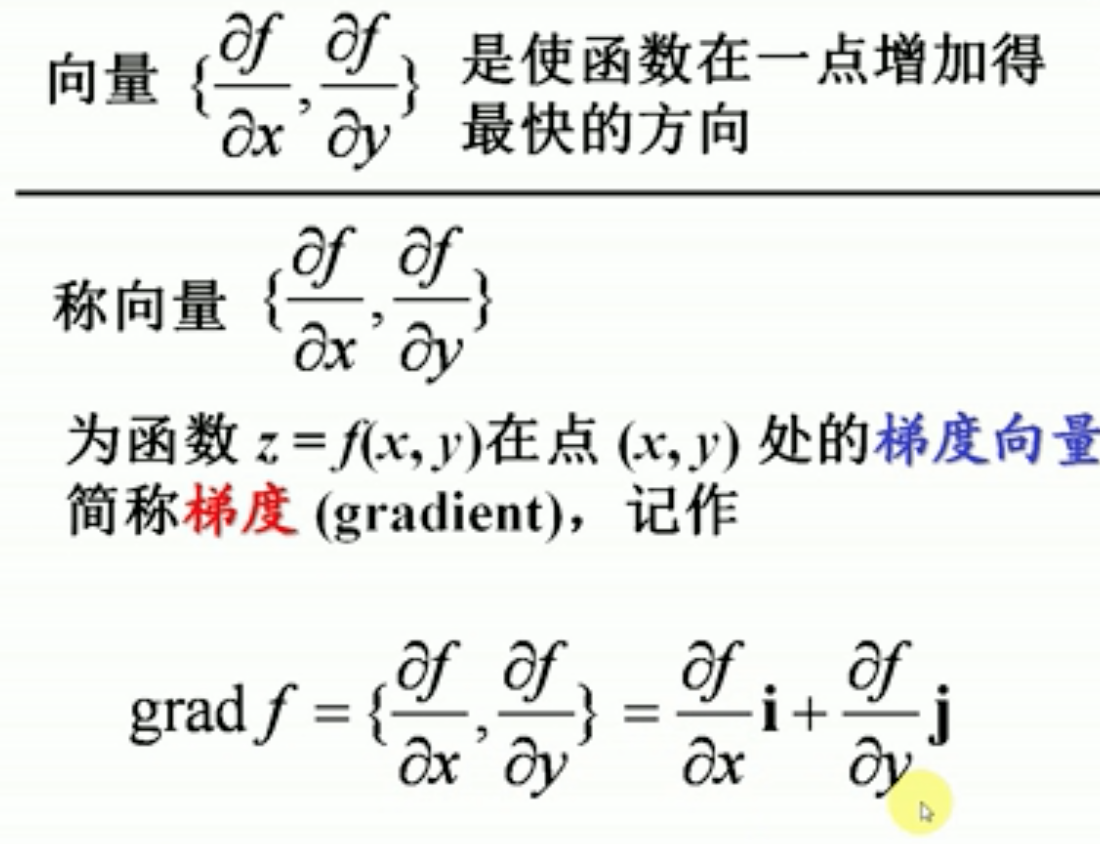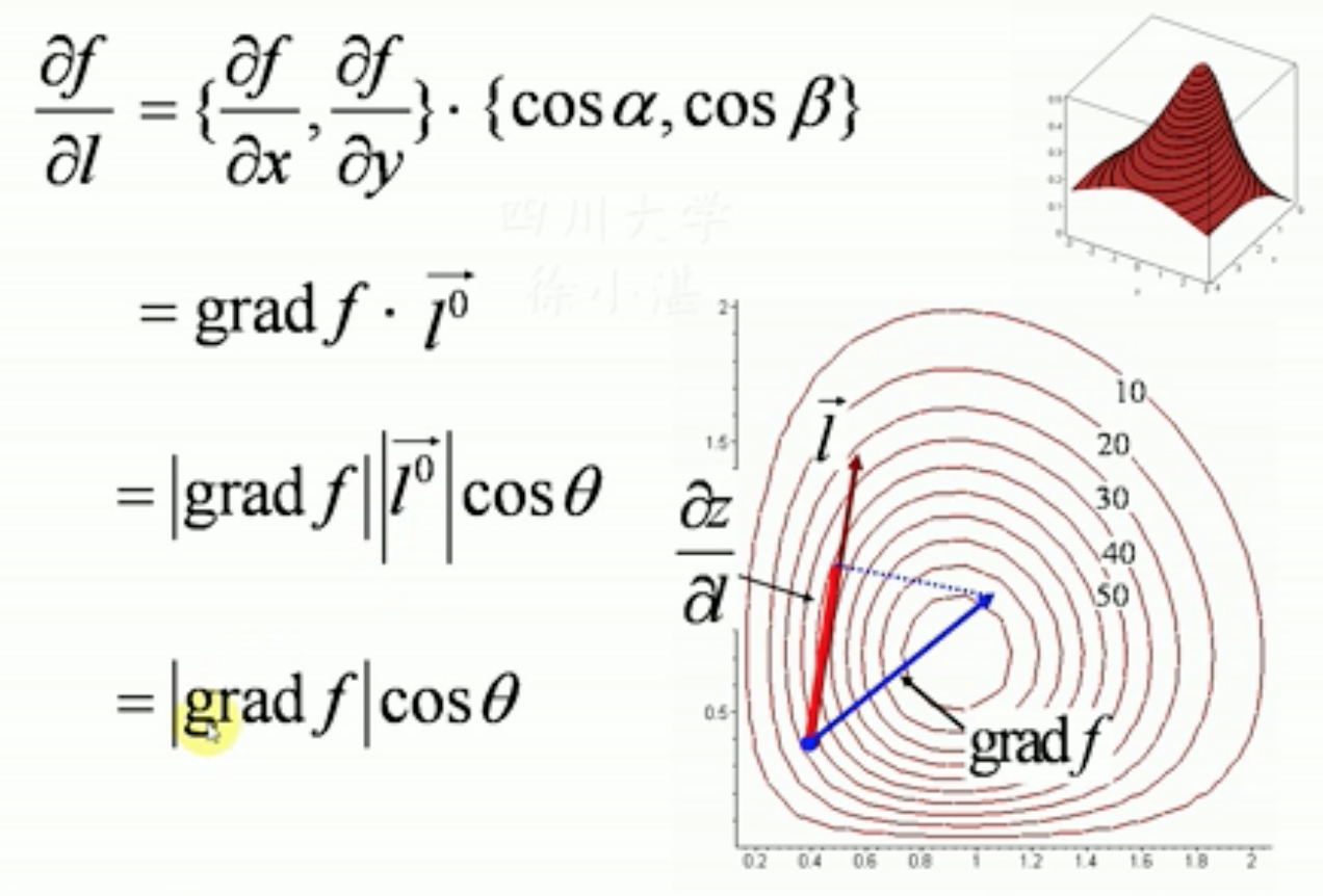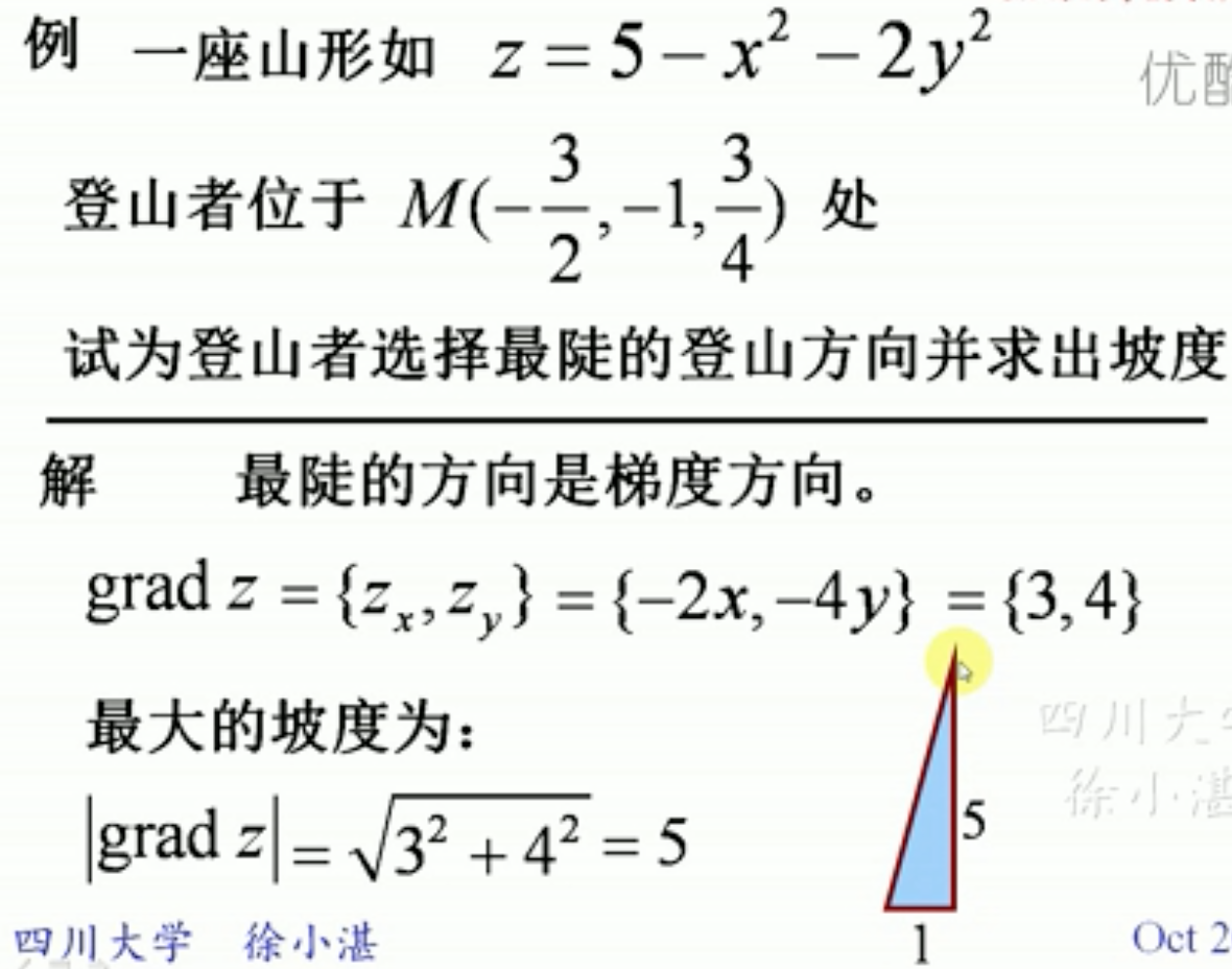 【高等数学】- 学习笔记 嘟嘟dududu 2018-09-27 1,376 阅读1分钟 #导数 1、引例 2、导数的定义 简单理解就是推导出来的数叫做导数 3、单侧导数 4、导数的几何意义 5、函数的可导性与连续性的关系 #偏导数 偏导数的几何意义 #方向导数 #梯度 意味着登山者在M位置,水平前进1个单位,高度增加5个单位,这个坡度相当陡