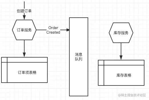 假设你已经采用了分布式系统,这里订单模块和库存模块是两个服务,分别拥有自己的存储(关系型数据库),
