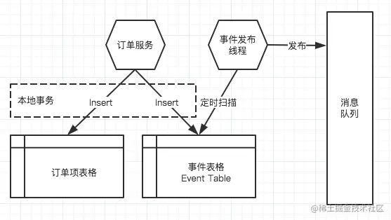 方案的优势是使用了本地数据库的事务,如果Event没有插入成功,那么订单也不会被创建;线程扫描后把event置为已发送,也确保了消息不会被漏发(我们的目标是宁可重发,也不要漏发,因为Event处理会被设计为幂等)。