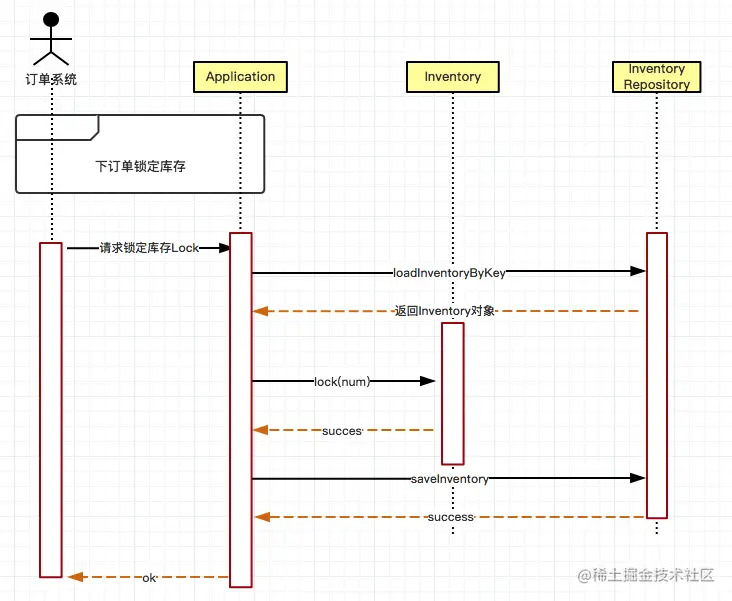 这样做下单锁库存业务逻辑的时候,每次必须先从Repository根据主键load还原Inventory这个对象,然后执行对应的lock(num)方法改变这个Inventory对象的状态(属性也是状态的一种),然后再通过Repository的save方法把这个对象持久化到存储去。