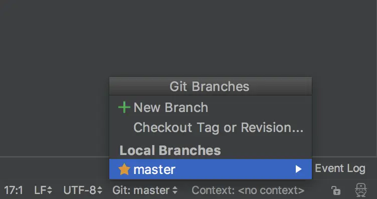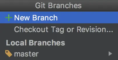 在AS中我们可以非常方便的管理我们的分支,依然是在主界面的右下角,点击当前分支,选中+ New Branch: